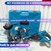 Poderoso Set de 4 herramientas Llave Impacto, Esmeril, Taladro y Rotomartillo