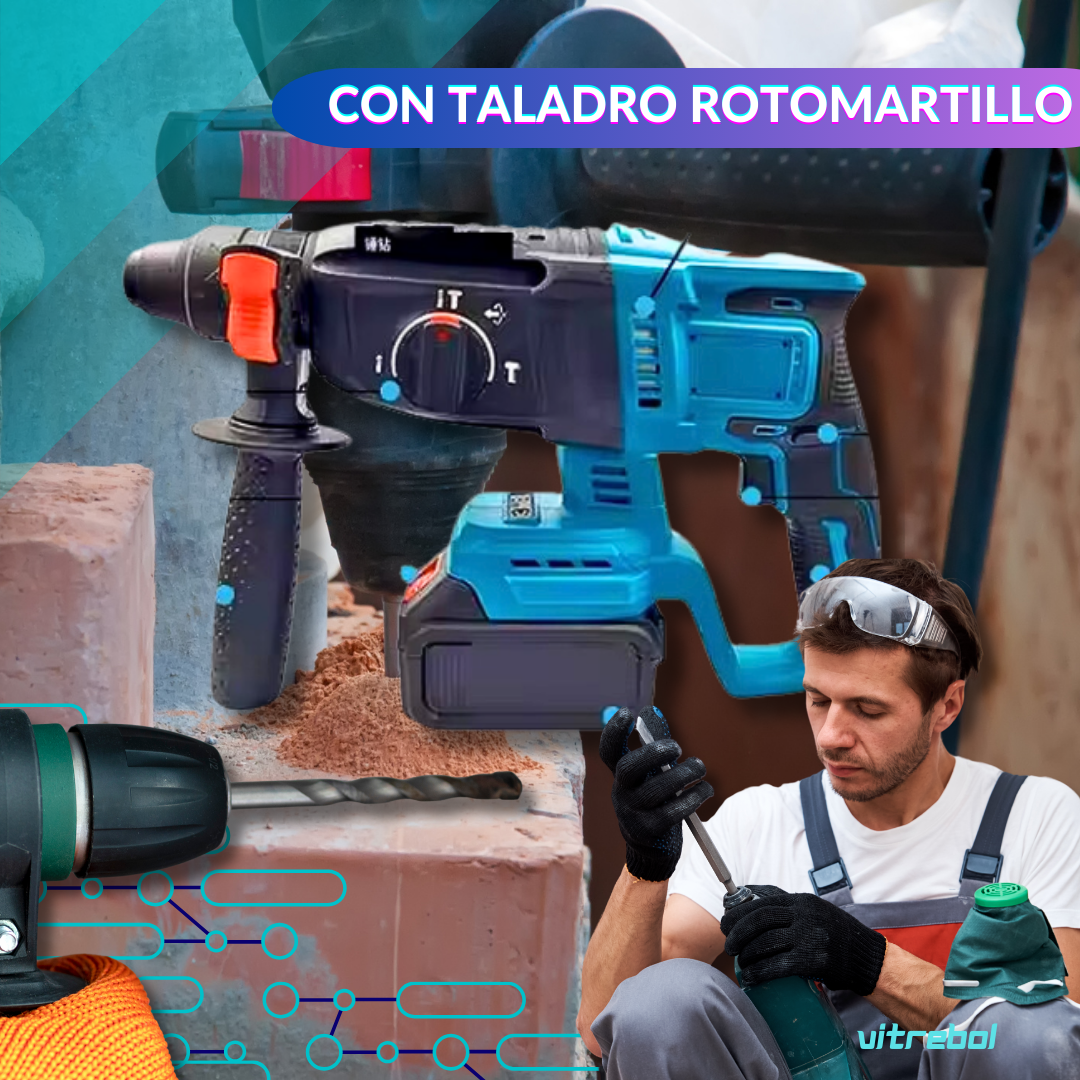 Taladro rotomartillo : Especial para perforaciones en superficies duras, con frecuencia de impacto de hasta 5900/min y un diámetro de 26mm.