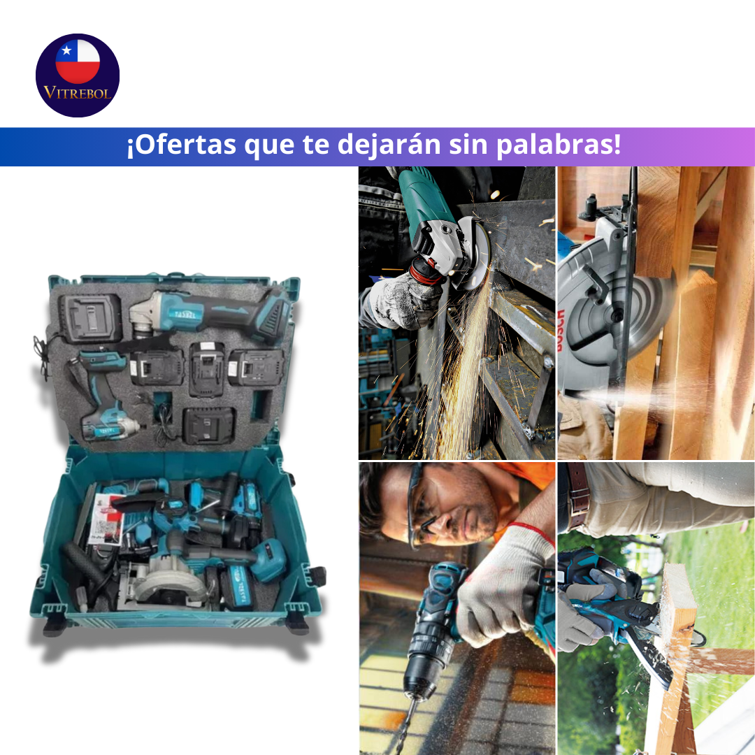 Kit Herramientas Inalámbricas x6, el juego ideal para trabajos en casa o en tu taller. Realiza tareas con mayor facilidad y precisión gracias a estas herramientas de alta calidad, diseñadas para ayudarte a completar cualquier proyecto de manera profesional y eficiente.